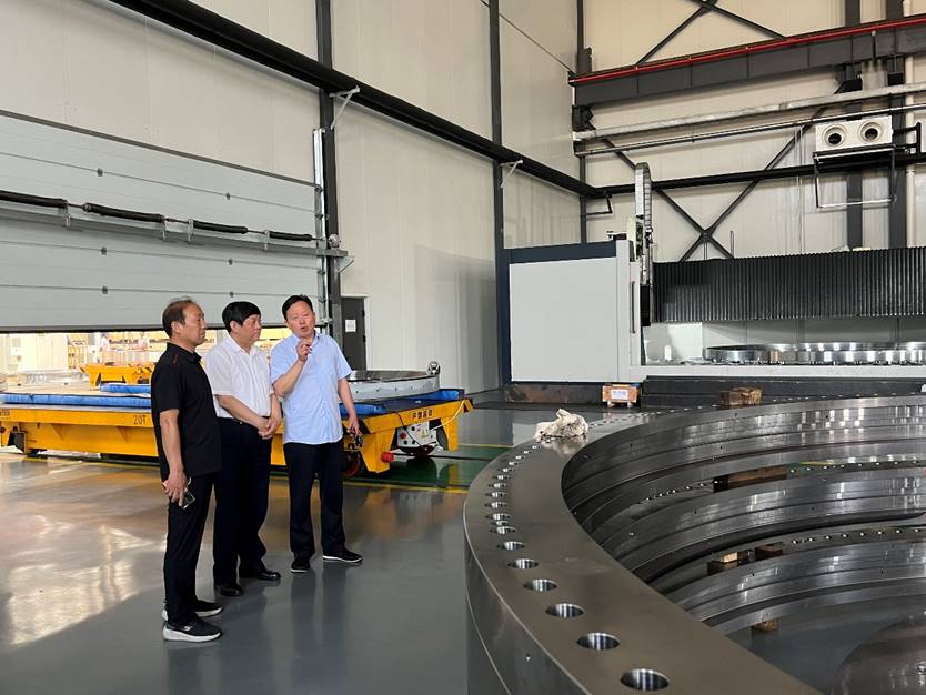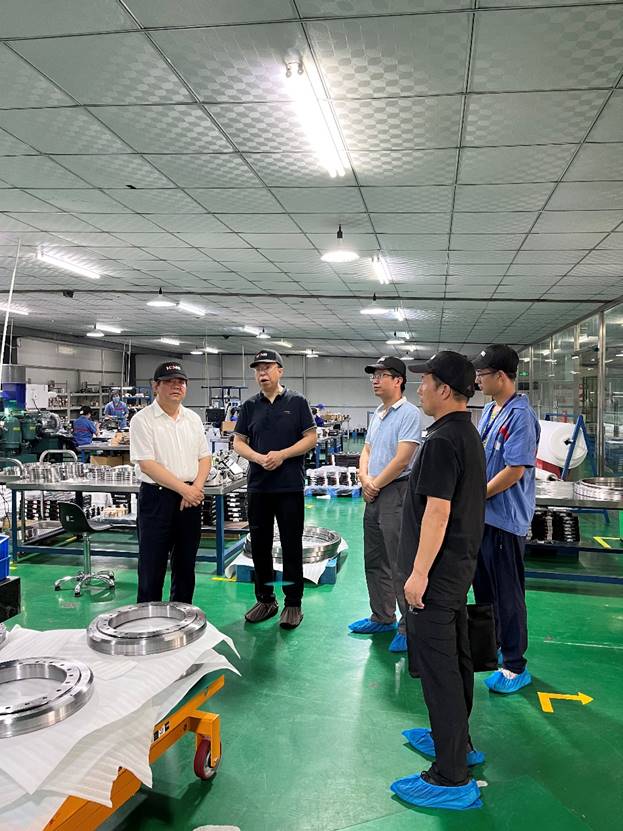 颉潭成一行參觀企業生産車間、産品陳列展,詳細了解企業發展曆程、生産狀況。洛陽新強聯回轉支承股份有限公司是一家國家級重點高新技術企業,以大型回轉支承産品和風力發電機偏航變槳軸承及主軸承産品研發、制造、銷售為主,是服務于風力發電、海工裝備、港口機械、船用機械、盾構機設備等行業的創新型龍頭企業。洛陽鴻元軸承科技有限公司緻力于研發、制造中國的高端軸承,是河南省瞪羚企業、河南省專精特新企業、洛陽市隐形冠軍企業,專業研發、制造精密轉台軸承、薄壁交叉滾子軸承、機器人減速器專用軸承三大系列産品,主要應用于高精度數控轉台、機床主軸、工業機器人、航空航天等領域。