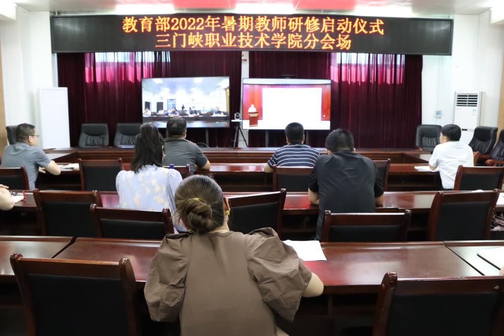 為了貫徹落實《河南省教育廳關于收看教育部2022年暑期教師研修啟動儀式直播的通知》要求,我院于7月20日下午在天鵝湖校區榮譽室設立分會場,全體教務處人員集中觀看了教育部2022年暑期教師研修啟動儀式,各院部以集中和分散相結合的方式觀看了線上直播。